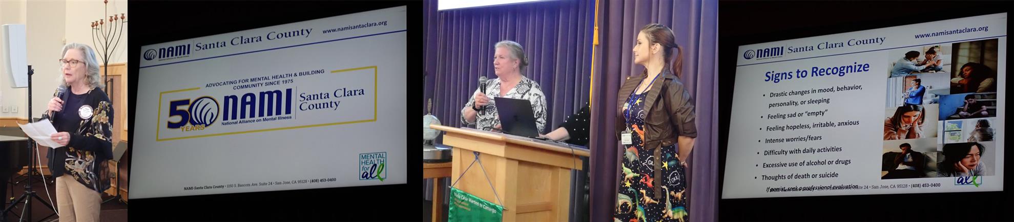 Sarah Schiltz introduced our guest speakers, Barbara St Clair and Merry Gold with NAMI, who spoke to us about mental wellness.