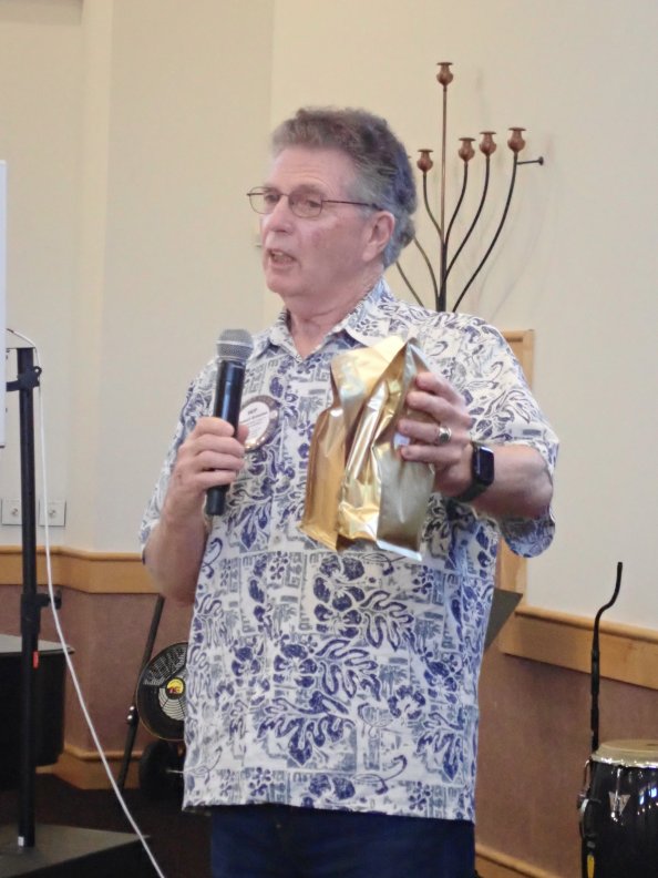 Skip Brewster auctioned off coffee to Mary and Linda.
