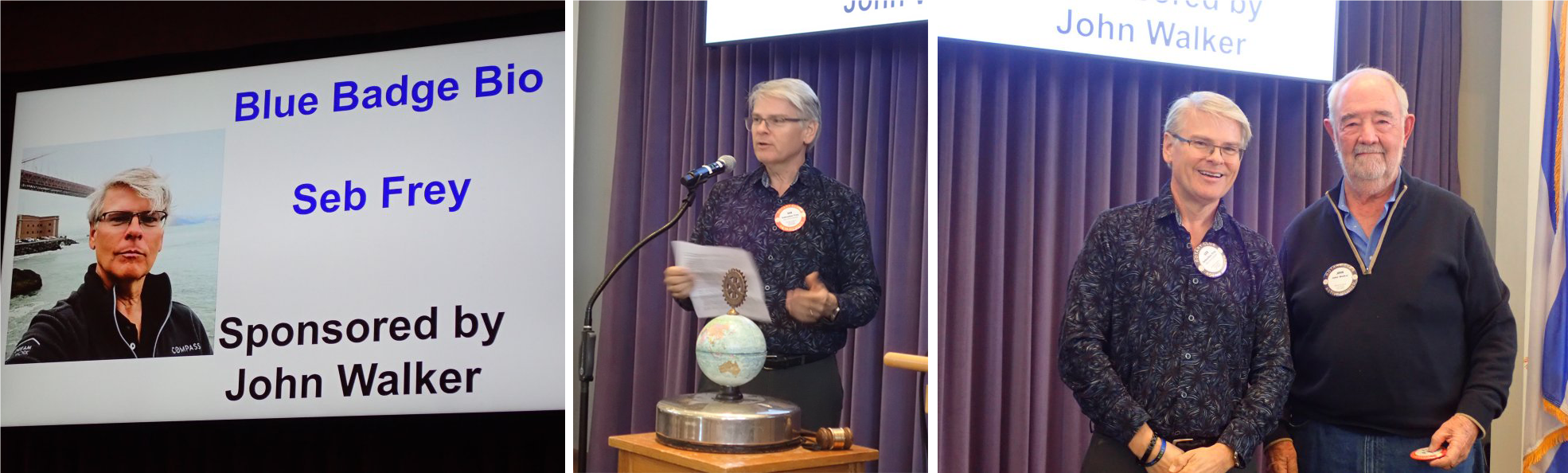 Seb Frey (pronounced Fry) presented his bio. He was raised in Berkeley and attended the same school as Kamala Harris. He spent several years in the San Francisco boys choir. He attended UCSC and worked as a database application developer. His career took him to Alaska, Portland, and Malaysia before he realized he preferred sales and became a Realtor and Broker. He has two teens and was previously a Capitola Rotarian. He now serves on the Board of Directors of the Association of Realtors and shared that he loves Los Gatos and his colleagues at Compass.