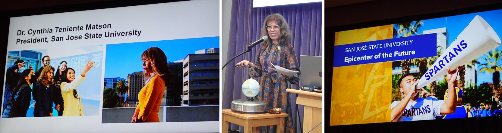 The speaker today was the president of San Jose State University, Dr. Cynthia Teniente Matson. Per the new policy, speaker notes will not be summarized in the meeting notes.